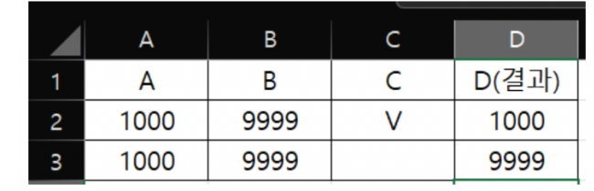 1.C값이 "V"이면 A열 값 가져오기