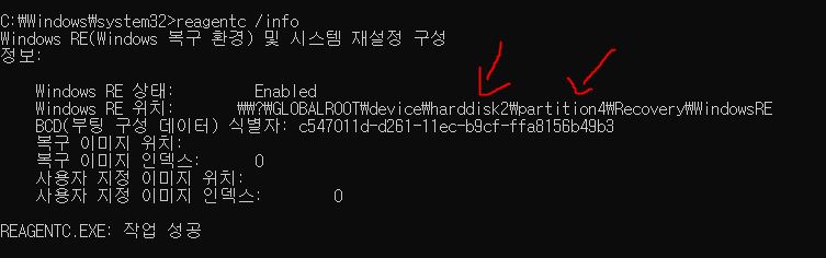 6. 주 파티션 3, 복구디스크 4번 확인